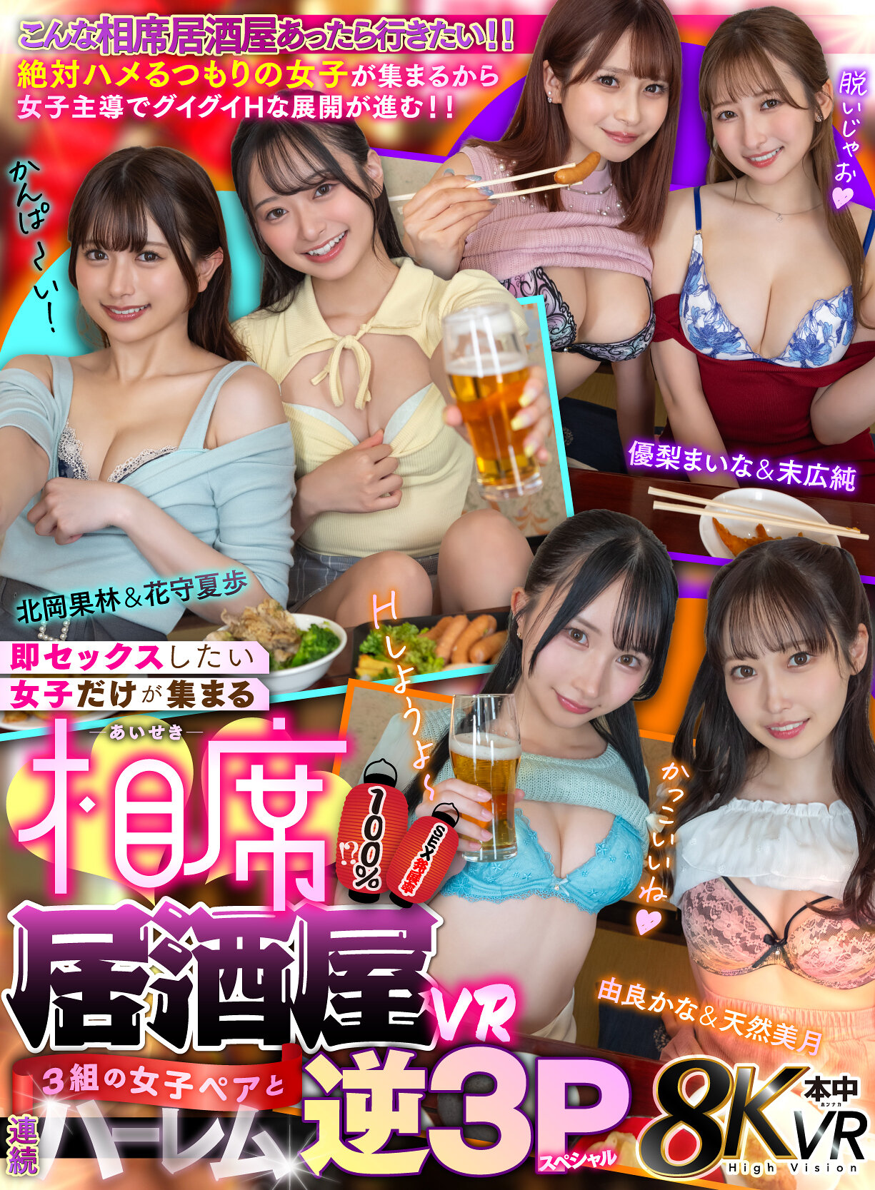 この作品の相席居酒屋は、SEX発展率100%。来る女子は全員、最初からそのつもりで来ている。しかも1組じゃない。3組来る。6人の女の子と、3回の逆3P。